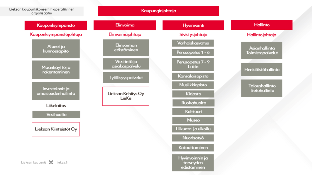 Lieksan kaupun­gin organi­saa­tio­kaa­vio.